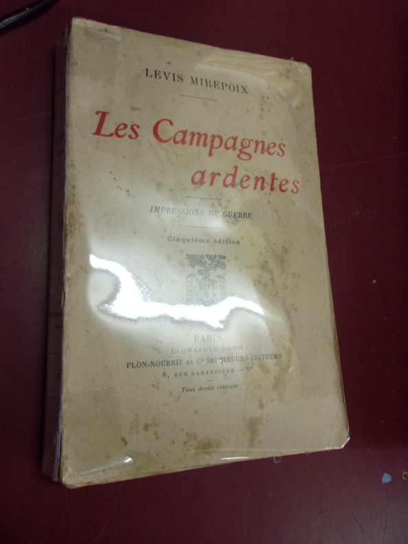 Paris Plon 1917 In12 Paris, Plon, 1917 - in12 demi-veau, dos à nerfs, 256pp - mors et coiffes très frottés - Envoi de Mirepoix à Pierre Taittinger. Norton Cru classe cet ouvrage dans les souvenirs bien qu'il le qualifie de littéraire mais honnête. Maurassien, membre de l'action française, le duc de Levis-Mirepoix eut pour cet ouvrage, le prix de l'Académie Française. Il n'est pas étonnant que l'on retrouve un envoi à Pierre Taittinger, lui-même membre des Jeunesse Patriotes et collaborateur notoire lors de la seconde guerre mondiale.