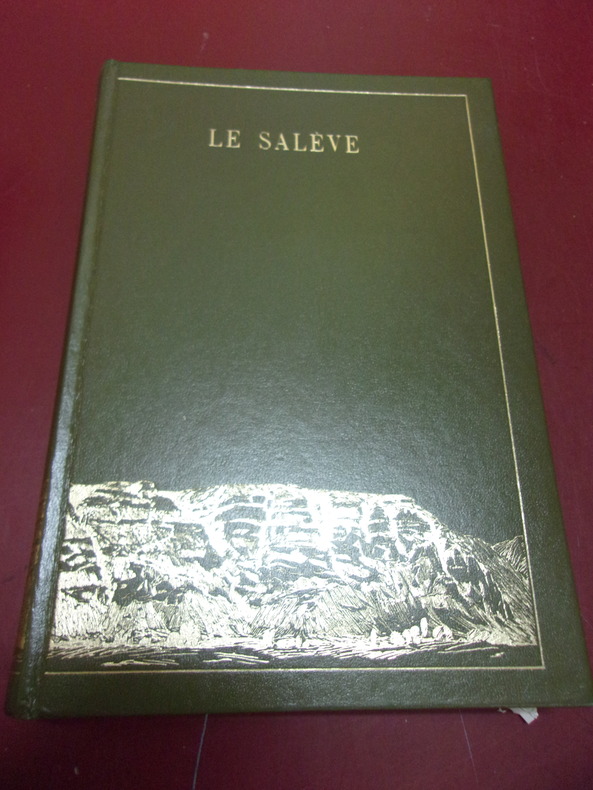 Genève, Henry Kündig, Libraire-Editeur, 1899. In-8, VI[dont faux-titre et titre]-(2)[table, blanc]-448 pp., demi-chagrin brun, dos à ners orné de filets et du titre dorés, plat supérieur de couverture imprimé illustré gris vert conservé(reliure postérieure; couverture piquée, sinon bel exemplaire). "Avec 65 illustrations" (dont frontispice et neuf planches à pleine page); in fine, grand panorama dépliant(cm 57 x 24), hors texte: "Vue générale du Grand Salève. Prise de Troinex", d'après le dessin de Ch. MELTZER (1878), complété par C. FONTANAZ et E. THURY(1898); en rouge, sentiers et voies d'escalade.