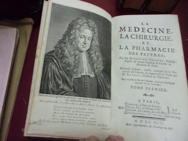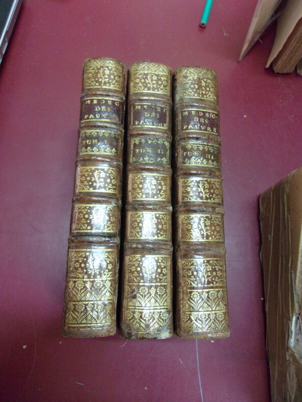 La 3e édition, la première augmentée de la Vie de l'auteur et d'une bibliographie de ses ouvrages (142 p., au début du 1er volume). Ces 4 volumes comprennent tous les chapitres de la première partie, celle de la médecine des pauvres, les maladies des personnes du sexe, les maladies des enfants, et les maladies des vieillards avec les 2 deux derniers volumes, renfermant la chirurgie et la pharmacie. Hirsch III/112; Blake 202; Quérard IV/49ff. Image disp.