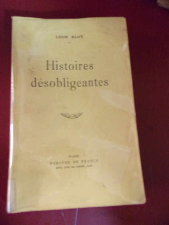 Léon Bloy, Histoires désobligeantes. Paris, Dentu, sd [1894]. In-12, 371p. Edition originale, exemplaire sans mention d'édition. Recueil de 32 contes cruels. Reliure demi-chagrin rouge à coins, dos à nerfs, tête dorée, première couverture conservée, frottements aux mors. Bon exemplaire.
