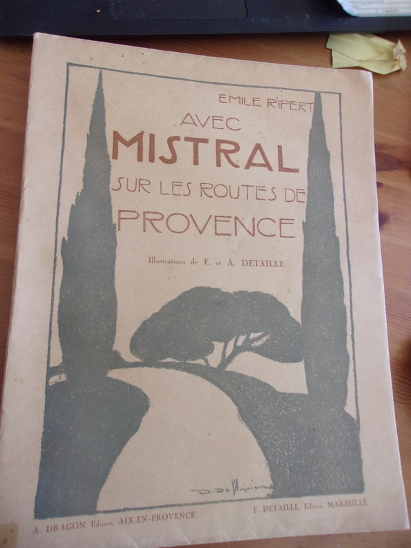 Belle évocation de la Provence sur les pas de Mistral, illustrée de nombreuses reproductions photographiques de F. & A. Detaille, et d'aquarelles h.t. de Léo LELEE (4) et Henri ROUSSEAU (2). Couverture illustrée par D. DELLEPIANE.