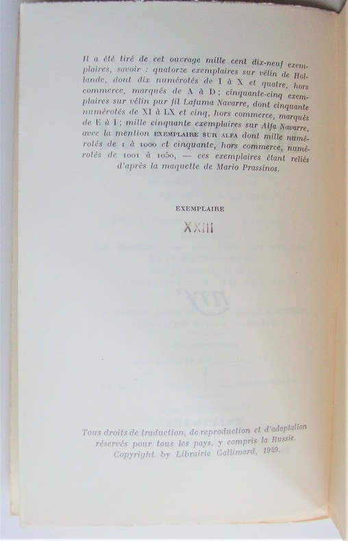 Gallimard | Paris 1949 | 11.50 x 18 cm | reliure de l'éditeur