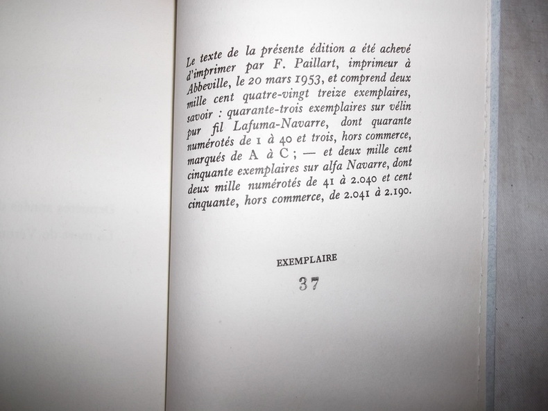 Gallimard, 1953 In-8, 143pp EO, 1 des 40 sur pur fil Lafuma, tirage de tête