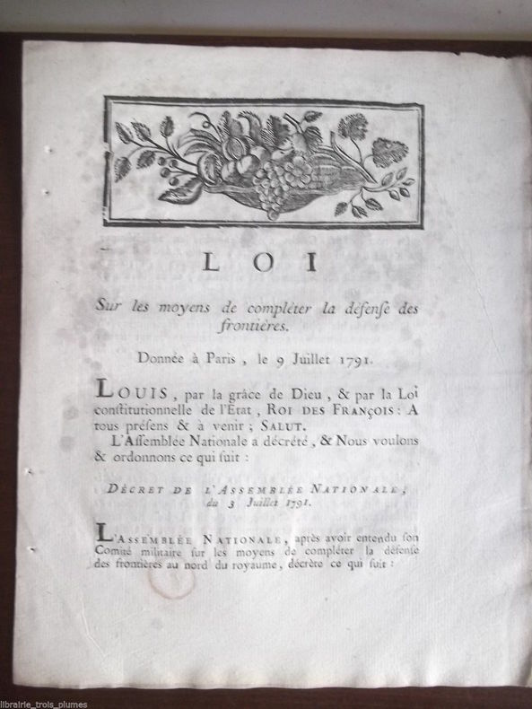 Alençon, Malassis le Jeune, 1791; in-4, 3 pp., vignette, dérelié.