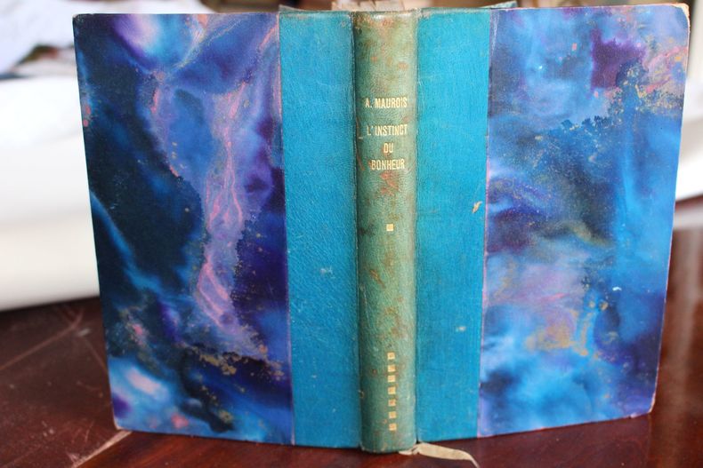 André Maurois, pseudonyme d’Émile Salomon Wilhelm Herzog, né le 26 juillet 1885 à Elbeuf et mort le 9 octobre 1967 à Neuilly-sur-Seine, est un romancier, biographe, conteur et essayiste français. « Joli couple », a dit Madame de la Guichardie en regardant Colette Romilly et André de Saviniac courir bras dessus bras dessous vers les tennis. Et le petit cercle sur qui elle règne dans ce coin de Périgord a compris qu'elle songe à les marier. Nulle union ne serait mieux assortie. Alors pourquoi les parents de Colette accueillent-ils avec désarroi le projet de leur amie? lis finissent par s'en ouvrir à elle. Leur secret risque de peser sur l’avenir de Colette. C'est celui d'une bataille perdue contre les préjugés des Romilly, puissants industriels de Pont-de-l'Eure. Comment réagiront Colette et André? Première surprise : les jeunes « savent » déjà. Le silence de ses aînés a seulement retenu Colette de leur en parler. En se taisant sur les sujets brûlants, en gardant pour soi ce qui pouvait ébranler leur paix, ils ont obéi les uns et les autres à l'instinct de conservation, l'instinct du bonheur. C'est aussi avec un dosage de paroles et de silences que Madame de la Guichardie manœuvre les Saviniac. Stratégie nécessaire dans ces milieux de province si bien décrits ici où, sous la surface du rigorisme, bout le courant des préjugés, des haines et des passions. volume in8, 18x13, relié demi veau, 236pp, bien frais, bel exemplaire! Paris, Grasset, 1934 d'autres vols. de André Maurois dans la même reliure, groupez les achats ! ref/133