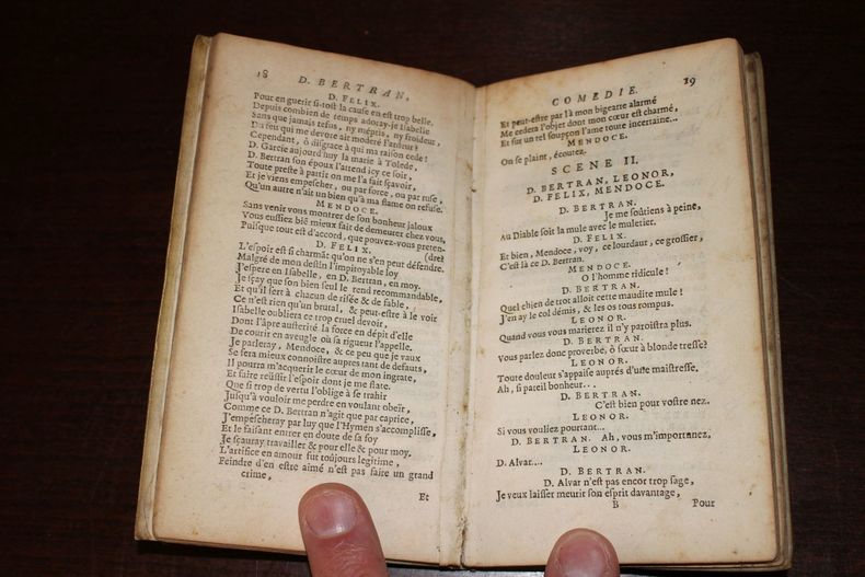 Paris, suivant la copie imprimée, 1663. In-12, [6]-90p. Nouvelle édition de cette pièce publiée et jouée en 1652. Reliure plein vélin de réemploi, moderne, dos muet. Un feuillet sur onglet. Ouvrage rare.