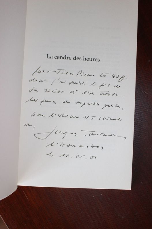 Paris, L'Harmattan, 2001. In-8, 49p. Edition originale de ce recueil de poème enrichi d'un long envoi à Jean-Pierre Le Goff daté du 14 mai 2001.
