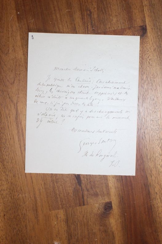 Georges Sauton (1842-1888), journaliste, romancier. L.A.S., sd, 1p in-12. Il signale avoir quitté La Lanterne, ayant démissionné. Ayant su qu'il y avait des changements au Voltaire, il demande s'il y a une place pour lui. [213]