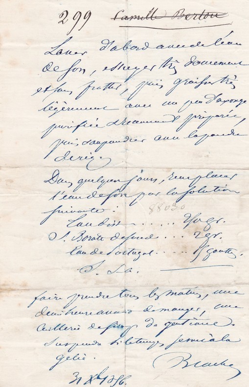 Jean-Gaston-Marie dit Gaston Blache (XIXe), médecin de l'hôpital Cochin, médecin du prince royal. P.A.S., 31 décembre 1856, 1p in-8. Long remède médical. [321]