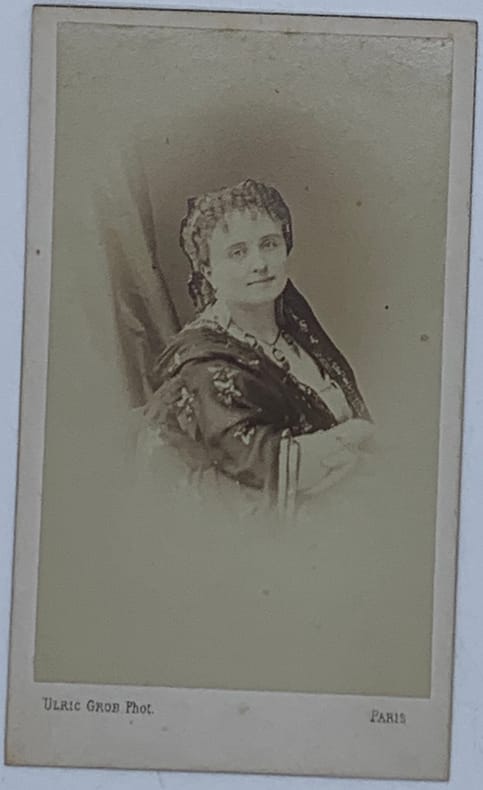 Hortense Schneider (1833-1920), cantatrice. Photographie cdv originale par Ulric Grob, datée 1866 au crayon au dos. Très bel état, bien contrastée. [187]