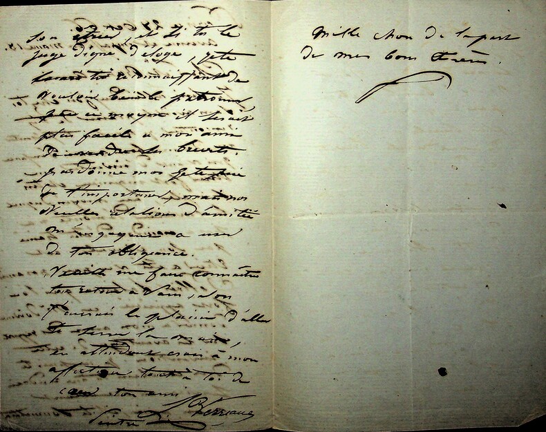 Edouard Vandal (1813-1889), administrateur, gendre du fameux baron d'Anthès (qui tua Pouchkine).L.A.S., mercredi 1er [1867], 1p in-8.Au compositeur Léon Gatayes (1805-1877). Belle lettre regrettant de ne pas avoir pu utiliser les deux places envoyées parAlphonse Karrpour assister auxRoses jaunes(probablement une répétition). Il était absent de Paris. En revanche, «j'irai certainement applaudir les Roses jaunes au premier jour».Gatayes et Karr étaient très amis.On jointdu même un court billet.[129-2]