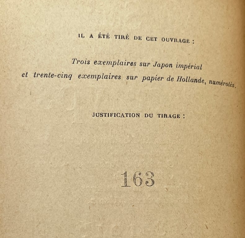 édition originale, un des 371 ex. num. sur Hollande, second papier. Très bon état d’occasion