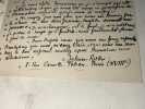 S.N. Bezons 1941 Lettre autographe signée de Louis-Ferdinand CELINE de 2 pages ( 1 feuillet recto-verso ) adressée à Abel BONNARD, datée du 13 mars 1941, écrite à l'encre noire sur une ordonnance du Dr. L.F. DESTOUCHES médecin du Dispensaire Municipal de Bezons ( Seine-et-Oise ), le félicitant de son texte "Changement d'époque" paru dans la Nouvelle Revue Française le 01/03/1941. 1 volume in-8 ( 230 X 155 mm ), cartonnage de papier marbré à la bradel, dos lisse janséniste avec pièce de titre de basane tabac. Un papillon manuscrit de Louis-Ferdinand CELINE est collé en début de volume "Changement d'époque changement de valeur" et précède la lettre autographe elle-même suivie des 5 feuillets du texte d'Abel BONNARD. Bel état.Un papillon manuscrit de 8 lignes situé à Copenhague et daté du 5 Sept. 1947, signé Louis-Ferdinand CELINE ou il demande à son interlocuteur de lui communiquer l'adresse d'Abel BONNARD est joint à l'exemplaire.