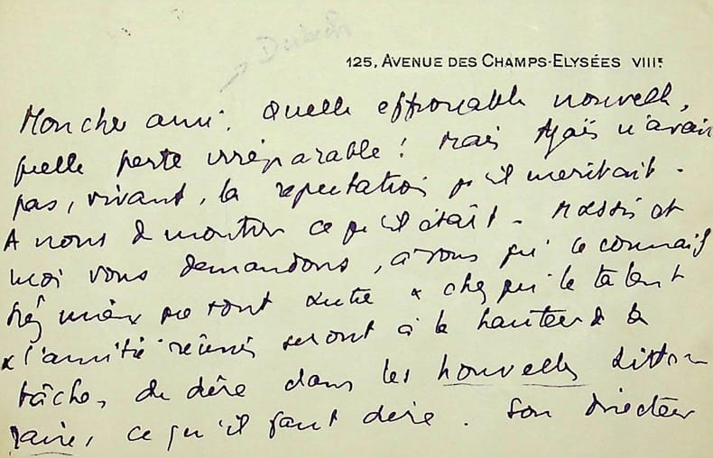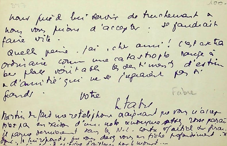 Lucien Fabre (1889-1952), écrivain, industriel. L.A.S., sd, 2p in-12. A l'écrivain Lucien Dubech (1881-1940). Courrier amical après la mort d'un ami pour lequel il faut dire quelque chose dans les Nouvelles littéraires. [382]