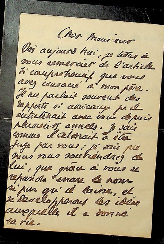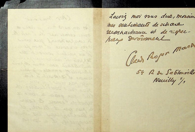 Claude Roger-Marx (1888-1977), écrivain, historien d'art. L.A.S., sd [1913], 1p 1/2 in-12. Il remercie pour un article sur son père, l'écrivain Roger Marx (1859-1913). [382]