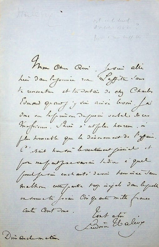 Ludovic Halévy (1834-1908), écrivain, librettiste, membre de l'Académie française. L.A.S., sd [dimanche matin], 1p in-8. Belle lettre amicale dans laquelle Halévy se réjouit du dénouement d'une affaire pour son ami. [383]