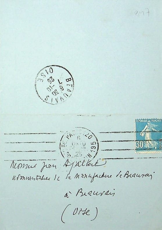 1 lettre autographe signée (2 pages en 1 feuillet in-8), adressée à Jean Ajalbert. Dorgelès lui confirme qu’il va mieux et qu’il a « employé ces jours d’isolement à lire le volume en retard » et qu’il « est maintenant à jour mais bien hésitant, sans candidat pour qui je serais disposé à me faire hacher »