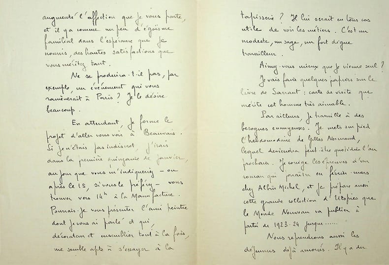Ernest Tisserand (1880-1959), écrivain. L.A.S., Paris, 29 décembre [ca.1919], 3p 1/2 in-8. A l'écrivain Jean Ajalbert (1863-1947). Longue lettre amicale, pleine de reconnaissance, donnant aussi des nouvelles de son travail : l'aide apportée à Gilles Normand (1875-1952) pour la création d'un hebdomadaire, un roman dont il corrige les épreuves, une collection d'utopies qu'il va lancer. [386]