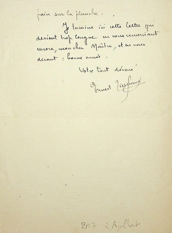 1 lettre autographe signée (2 pages en 1 feuillet in-12), adressée à Jean Ajalbert. Hennique lui précise que sa santé risque de l’empêcher d’être présent aux délibérations du jury 1912