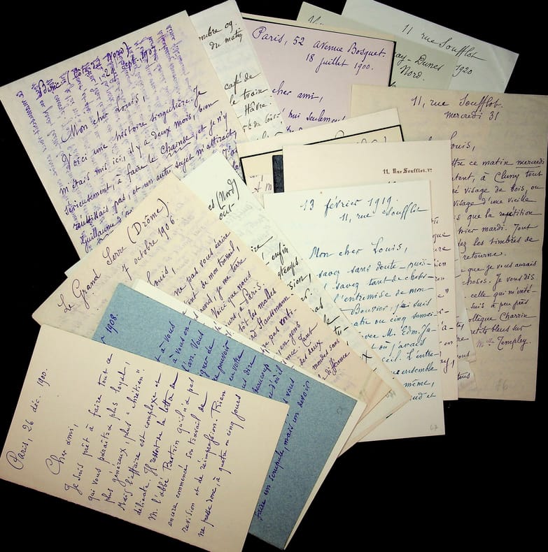 Joseph Bédier (1864-1938), écrivain, philologue, membre de l'Académie française. 22 L.A.S. (dont 1 incomplète), années 1900-1920, environ 68p. Important ensemble à l'écrivain Louis Artus (1870-1960), à étudier. Artus et Bédier ont fait le livret de l'opéra Tristan et Iseult de Ladmirault, créé en 1929. [387]