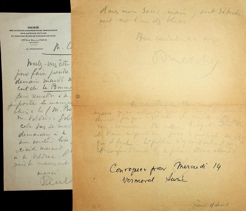 Lot 2 L.A.S., sd [fin 1911] et 12 février 1912, 10p in-12. Deux longues lettres à Paul Myrriam, écrivain provençal et secrétaire de la revue Les Marches de Provence. Dans la première, il parle des articles qu'il écrit pour Le Petit Provençal, Le Figaro ou La Gazette de Hollande et mentionne un passage en Provence pendant lequel il n'a pu visiter Myrriam. Il a lu les vers deMyrriam, pense à lui pour la revue Les Entretiens Idéalistes, etc. La seconde lettre concerne uniquement le premier numéro des Marches de Provence que Vierge a reçu. Il critique en donnant les points positifs et négatifs de la revue, et encourage Myrriam, lui disant par exemple de sélectionner plus les collaborateurs. Scotchs en bordure. Beaux courriers littéraires