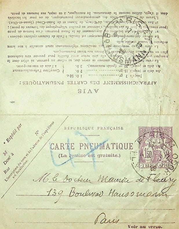 s. l. s. d. [1908 ou 1919 ?] | 11.60 x 17.80 cm | 4 pages sur un feuillet remplié