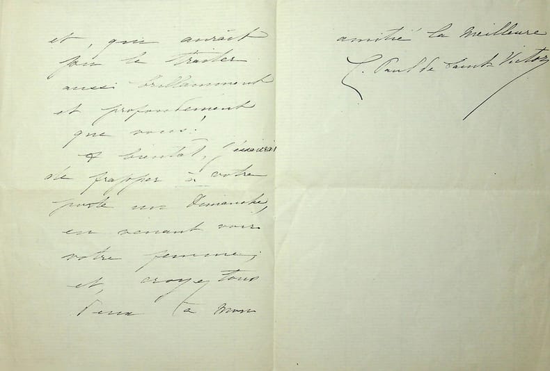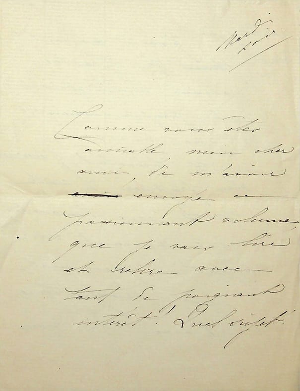 Claire de Saint Victor (1859 ou 1860-1943), fille de l'écrivain Paul de Saint-Victor. L.A.S., sd [mardi soir], 2p 1/4 in-8. Au docteur et écrivain Maurice de Fleury (1860-1931). Remerciements pour un livre. [389]