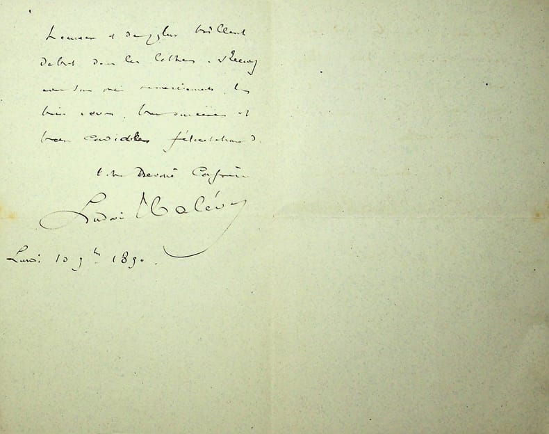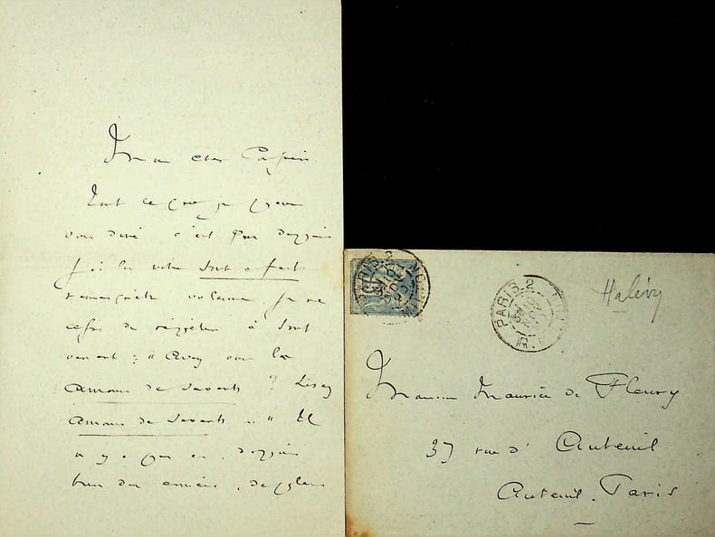 Ludovic Halévy (1834-1908), écrivain, librettiste, membre de l'Académie française. L.A.S. + enveloppe, 10 novembre 1890, 1p 1/2 in-12. Au docteur et écrivain Maurice de Fleury (1860-1931). Belle lettre encensant son ouvrage Amours de Savants. [390]