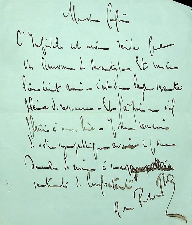 Maurice Barrès (1862-1923), écrivain, homme politique. L.A.S., janvier 1906, 1p in-8. Au docteur et écrivain Maurice de Fleury (1860-1931) qui vient de le féliciter pour son entrée à l'Académie française. « Je vous remercie, mon cher Fleury, de votre petit mot et de vos sympathies (éprouvées de longue datte [mot barré] date). Je vous serra la main. Barrès. Il faut que je surveille mes lapsus ». Belle lettre [388]