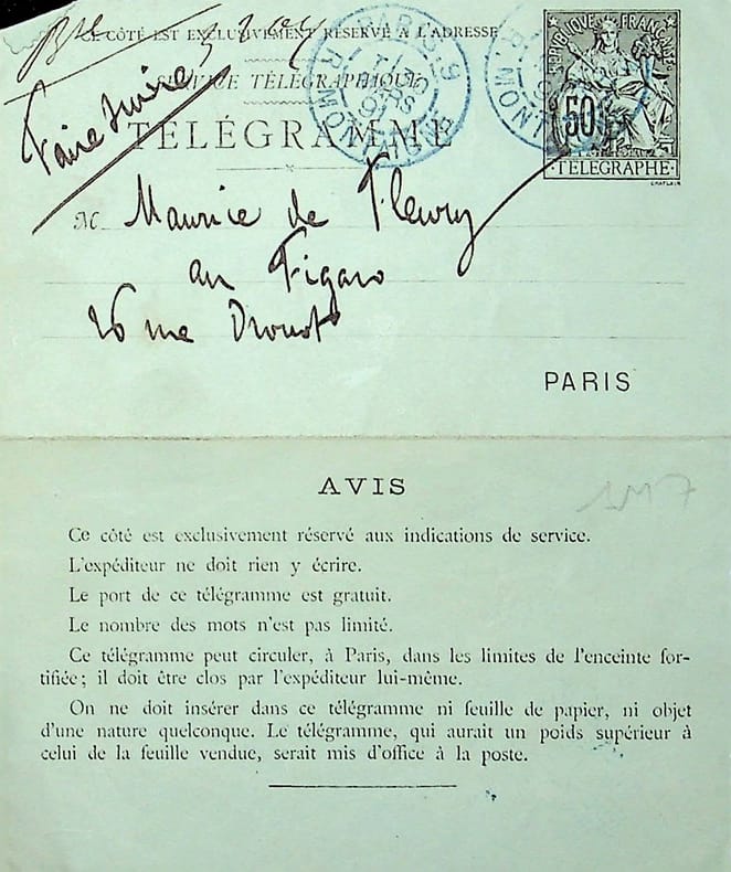 s. l. s. d. [1908 ou 1919 ?] | 11.60 x 17.80 cm | 4 pages sur un feuillet remplié
