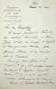 Xavier Galezowski (1832-1907), médecin, ophtalmologue polonais, établi à Paris. L.A.S., Paris, 17 janvier 1883, 1p in-8. Au médecin Charles-Victor Daremberg (1817-1872) autour d'un traitement de l'oeil. « Mon cher ami, Je pense qu'il faudra déjà interrompre les cautérisation ou badigeonnage de paupière et de se contenter de l'[mot illisible] de quelques gouttes. ». Découpe à l'angle supérieur gauche. [394]