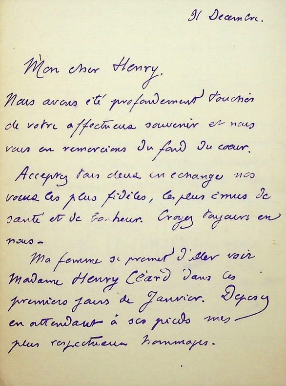 Alphonse Daudet (1840-1897), écrivain. L.A.S., 18 novembre 1893, 1/2p in-12. Télégramme à l'écrivain Henry Céard (1851-1924). « Votre chère figure nous a été si bonne à voir jeudi dernier. Venez donc diner jeudi prochain avec nous, si vous êtes libre. Ca vous va-t-il, ami Céard ? Alph. Daudet ». [364]