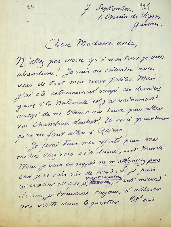 Pol Neveux (1865-1939), écrivain, bibliothécaire, membre de l'Académie Goncourt. L.A.S., 7 septembre [1925], 3P 1/2 in-8. A la veuve de l'écrivain naturaliste Henry Céard (1851-1924), membre de l'Académie Goncourt à qui a succédé Neveux. Belle lettre amicale donnant des nouvelles, mentionnant Gustave Geffroy qui a dit des choses gentilles sur le couple Céard. Il fait part aussi de la volonté de publier un recueil des meilleures critiques de Céard et demande des manuscrits et journaux conservés par son mari. [395]