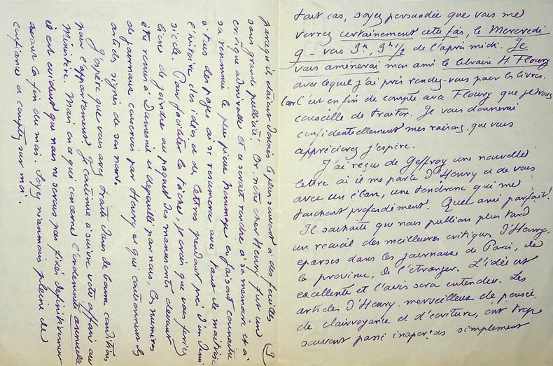 Pol Neveux (1865-1939), écrivain, bibliothécaire, membre de l'Académie Goncourt. L.A.S., sd [avril 1926], 3p in-4. A la veuve de l'écrivain naturaliste Henry Céard (1851-1924), membre de l'Académie Goncourt à qui succédera Neveux. Longue et belle lettre sur la mort de Gustave Geffroy , ses derniers jours, sa santé qui a décliné suite à la mort de sa soeur, sa visite le jour de Pâques (4 avril) alors que Geffroy vient de mourir au petit matin. Très belle lettre. [395]