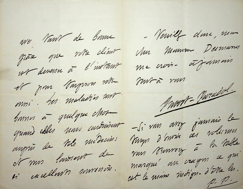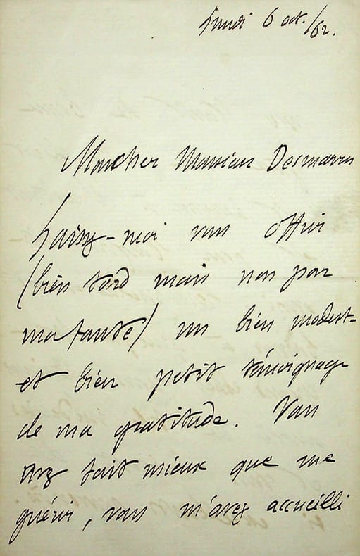 Lucien-Anatole Prévost-Paradol (1829-1870), journaliste, écrivain. L.A.S., 6 octobre 1862, 3p in-8. A l'ophtalmologue Louis-Auguste Desmarres (1810-1882). Belle lettre de remerciements à celui qui l'a guéri. [397]