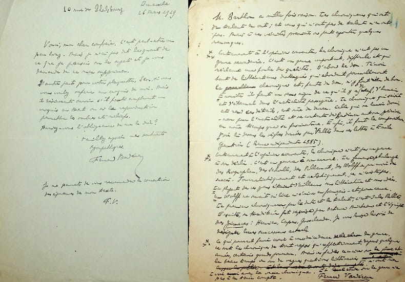 Fernand Vandérem (1864-1939), écrivain. L.A.S. & Manuscrit A.S., 26 mars 1919, 2p in-8. A l'écrivain et avocat Jean-Bernard (1857-1936). La lettre accompagne un petit texte manuscrit sur les chroniqueurs de talent, se basant notamment sur le discours de réception à l'Académie de Louis Barthou. [400]
