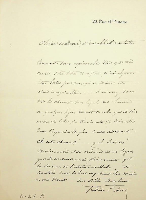 Frédéric Febvre (1833-1916), acteur et metteur en scène. L.A.S. (signée 2 fois), sd [ap.1900?], 2p in-8. A la soprano Fidès Devriès Adler (1850-1939). Longue lettre amicale. [402]