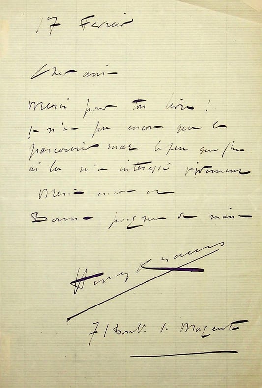 Henry Krauss (1866-1935), acteur, réalisateur. L.A.S., 17 février, 1p in-8. Remerciements pour un livre. [402]