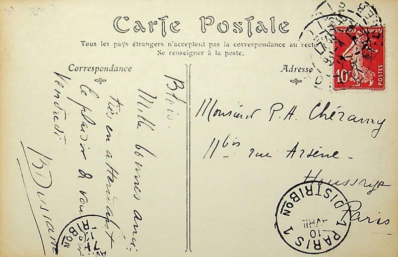 Béatrix Dussane (1888-1969), actrice, femme de lettres, sociétaire de la Comédie-Française. L.A.S., Blois, 10 avril 1911 (?), 1p in-12. Court message à Paul-Arthur Chéramy (1840-1912). « Mille bonnes amitiés en attendant le plaisir de vous voir vendredi. BDussane ». [404]