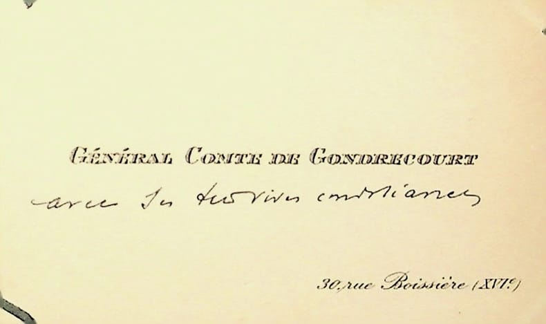 Henri de Gondrecourt (1867-1956), élève de Saint-Cyr, général. C.A., sd, 1 ligne. « Avec ses très vives condoléances ». [107]