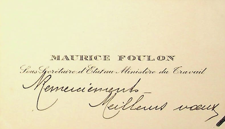 Maurice Foulon (1886-1968), homme politique, député. C.A., sd, 1 ligne. « Remerciements - Meilleurs voeux ». [107]