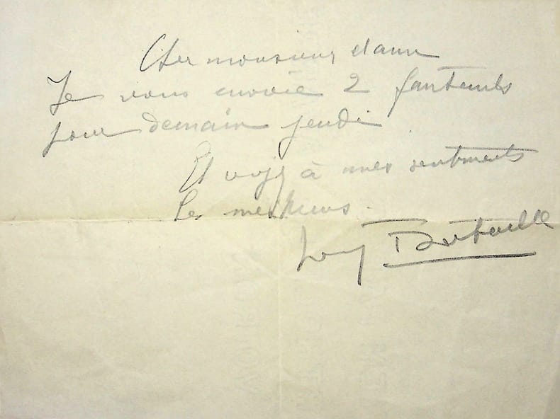 Henry Bataille (1872-1922), poète, écrivain. L.A.S., sd, 1p in-8 oblong. Au critique d'art François Thiébault-Sisson (1856-1944). Il lui envoie deux fauteuils pour le lendemain. [93]