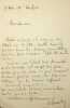Jacques-Joseph Grancher (1843-1907), médecin, pédiatre, participe avec Louis Pasteur à la première vaccination contre la rage. L.A.S., Houlgate, 27 août 1887, 1p in-8. Au docteur Georges Daremberg (1850-1907) : « Mon cher ami, [Pierre-Constant] Budin est parti et la maisonnée vous attend ici avec M. [Léon] Petit. Inutile de vous dire que nous serons très heureux de vous héberger. Venez donc jeudi ou vendredi. Le plus tôt sera le mieux. Voulez-vous avoir la bonté de voir [nom illisible, peut-être René du Castel?] et de lui demander s'il compte venir passer quelques jours avec nous et à quel moment ? Car nous ne pourrions recevoir trois hôtes aussi distingués avec des honneurs suffisants. La vaisselle manquerait ! Vous auriez la bonté, s'il vient, de vous entendre avec lui, pour vous succéder. Cordialement & affectueusement. J Grancher ». Budin est un autre pédiatre, Petit est aussi un médecin. Autographe rare du premier médecin à avoir pratiqué le vaccin contre la rage à un humain. [95-2]