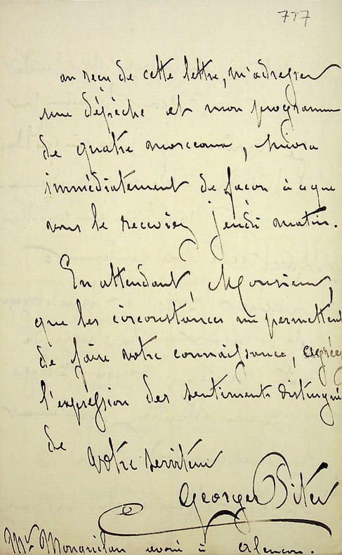 Lettre autographe signée de Félix Fénéon adressée à Gabriel Mourey, 18 lignes à l'encre noire, traces de pliure inhérentes à la mise sous pli de la lettre. Témoin et acteur privilégié de son époque, le critique d'art et collectionneur Félix Fénéon aide l'auteur Gabriel Mourey dans sa quête pourretrouver la correspondance de Paul Adam avec Maurice Barrès : "Le romancier et occultiste Paul Adam fut, comme vous savez, très lié à Maurice Barrès. (Candidats boulangistes dans deux circonscriptions lorraines contiguës, il firent fraternellement une campagne électorale et journalistique à laquelle leur amitié ne survécut guère.)Comment retrouver tous les papiers de Paul Adam, mort il y a une vingtaine d'années ? Mme Paul Adam vit-elle encore. - je n'en sais rien. Mais il est probable que vive une de ses soeurs, veuve depuis quelques trois ans de ce L. Cappielloauteur de tant d'affiches, - peintre elle aussi (et, de plus, fort sourde). Leur demeure était 8 rue Lechatelier, XVIIe. Par Mme L. Cappiello vous retrouverez peut-être des papiers barrésiens laissés par Paul Adam. Pour le cas où vous chercheriez dans cette direction, je note que que j'ai été en excellents termes avec toute la famille et que vous pouvez donc user de mon nom à votre gré." Personnalité majeure de l'Avant-garde, Fénéon avait le talent de débusquer les plus grands artistes. Cet étrange dandy volontairement discret, fit le vude servir quasi religieusement tout ce qui dans l'art forme une nouvelle sensibilité.Défenseur des néo-impressionnistes Seurat et Signac, ami de Mallarmé et de Camille Pissaro, de Paul Adam, Gustave Kahn, anarchiste puis communiste, directeur d'une douzaine de petites revues, il publia des uvres neuves telles les Illuminationsde Rimbaud, lePaludesd'André Gide,Dédalusde James Joyce. Prolifique journaliste, il écrivit partout et ne signa pas ses articles ou emprunta même des pseudonymes extravagants comme Gil de Bache, Porphyre Kalouguine, voire Thérèse ou Louise. Rare lettre de Félix Fénéon sur ses contemporains. Nous y joignions une lettre autographe signée de Fanny Fénéon, femme de Félix Fénéon, datée du 30 décembre 1941 alors que son mari était malade et alité, 10 lignes à l'encre noire, traces de pliure inhérentes à la mise sous pli de la lettre. "Mon mari gravement malade est dans l'impossibilité de recevoir quelqu'un. Si la difficultéque vous désirez lui remettre peut se résoudre par lettre, veuillez lui dire ce dont il s'agit. Une réponse immédiate vous montrera que malgré ses 80 ans, il est tout à votre disposition. [...]" - Photographies et détails sur www.Edition-Originale.com -