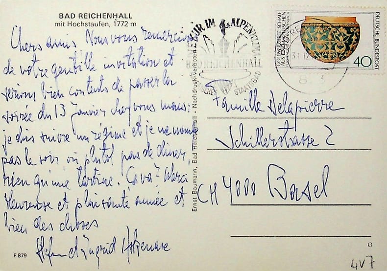 Stefan Askenase (1896-1985), pianiste polonais naturalisé belge. L.A.S., Bad Reichenhall, 31 décembre 1975, 1p in-12. Au poète (et compositeur ?) suisse André Delapierre et son épouse. Courrier amical. [269]