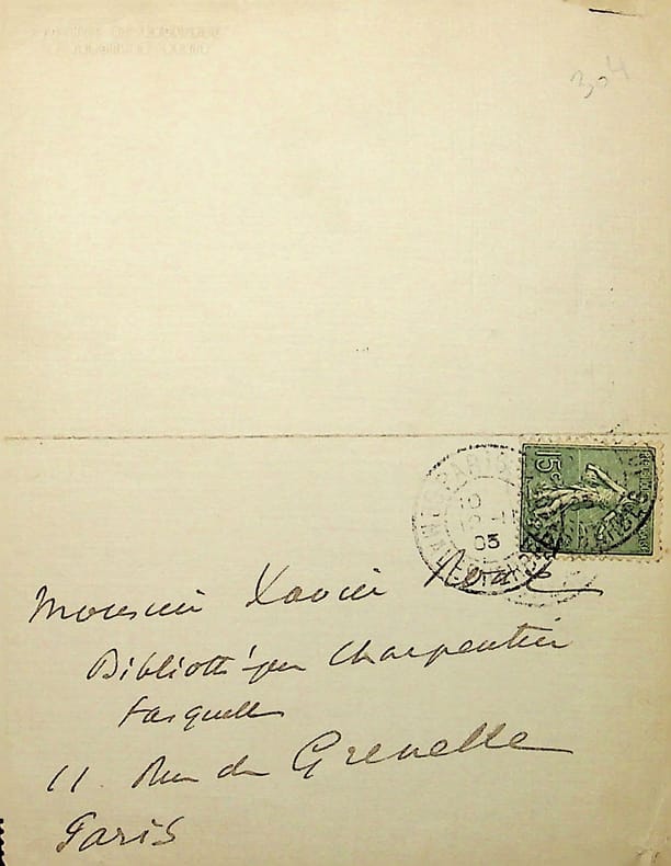 Lettre autographe signée de Félix Fénéon adressée à Gabriel Mourey, 18 lignes à l'encre noire, traces de pliure inhérentes à la mise sous pli de la lettre. Témoin et acteur privilégié de son époque, le critique d'art et collectionneur Félix Fénéon aide l'auteur Gabriel Mourey dans sa quête pourretrouver la correspondance de Paul Adam avec Maurice Barrès : "Le romancier et occultiste Paul Adam fut, comme vous savez, très lié à Maurice Barrès. (Candidats boulangistes dans deux circonscriptions lorraines contiguës, il firent fraternellement une campagne électorale et journalistique à laquelle leur amitié ne survécut guère.)Comment retrouver tous les papiers de Paul Adam, mort il y a une vingtaine d'années ? Mme Paul Adam vit-elle encore. - je n'en sais rien. Mais il est probable que vive une de ses soeurs, veuve depuis quelques trois ans de ce L. Cappielloauteur de tant d'affiches, - peintre elle aussi (et, de plus, fort sourde). Leur demeure était 8 rue Lechatelier, XVIIe. Par Mme L. Cappiello vous retrouverez peut-être des papiers barrésiens laissés par Paul Adam. Pour le cas où vous chercheriez dans cette direction, je note que que j'ai été en excellents termes avec toute la famille et que vous pouvez donc user de mon nom à votre gré." Personnalité majeure de l'Avant-garde, Fénéon avait le talent de débusquer les plus grands artistes. Cet étrange dandy volontairement discret, fit le vude servir quasi religieusement tout ce qui dans l'art forme une nouvelle sensibilité.Défenseur des néo-impressionnistes Seurat et Signac, ami de Mallarmé et de Camille Pissaro, de Paul Adam, Gustave Kahn, anarchiste puis communiste, directeur d'une douzaine de petites revues, il publia des uvres neuves telles les Illuminationsde Rimbaud, lePaludesd'André Gide,Dédalusde James Joyce. Prolifique journaliste, il écrivit partout et ne signa pas ses articles ou emprunta même des pseudonymes extravagants comme Gil de Bache, Porphyre Kalouguine, voire Thérèse ou Louise. Rare lettre de Félix Fénéon sur ses contemporains. Nous y joignions une lettre autographe signée de Fanny Fénéon, femme de Félix Fénéon, datée du 30 décembre 1941 alors que son mari était malade et alité, 10 lignes à l'encre noire, traces de pliure inhérentes à la mise sous pli de la lettre. "Mon mari gravement malade est dans l'impossibilité de recevoir quelqu'un. Si la difficultéque vous désirez lui remettre peut se résoudre par lettre, veuillez lui dire ce dont il s'agit. Une réponse immédiate vous montrera que malgré ses 80 ans, il est tout à votre disposition. [...]" - Photographies et détails sur www.Edition-Originale.com -