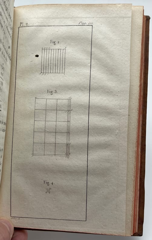 Paris, Imprimerie Nationale Exécutive du Louvre, an II [1794] ; in-8. XIV-147pp.-14ff. (Tables)-3 planches hors-texte. Basane marbrée, dos lisse, roulettes dorées, pièce de titre bordeaux. Reliure moderne. Feuillet de titre tâché et réparé aux angles, Papier légèrement juani, mouillure marginale en pied du cahier C.