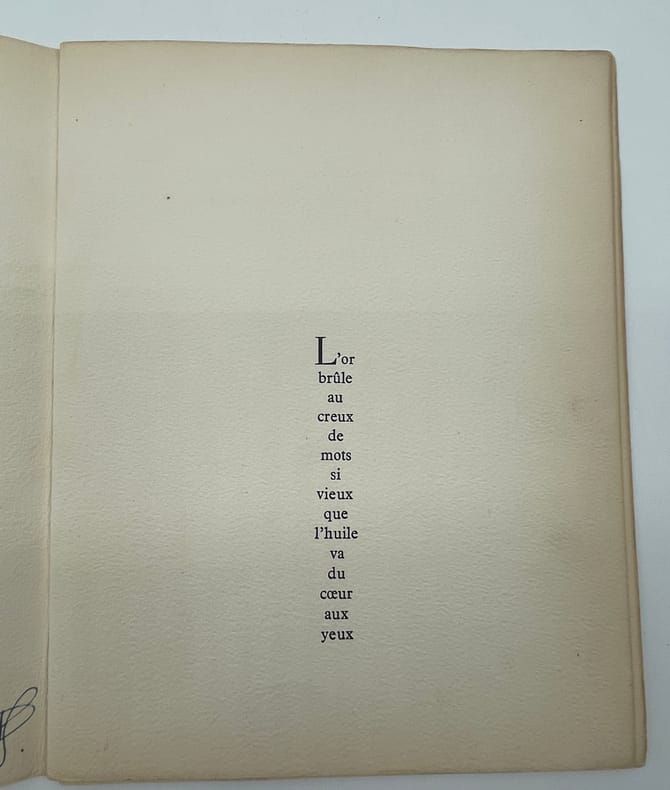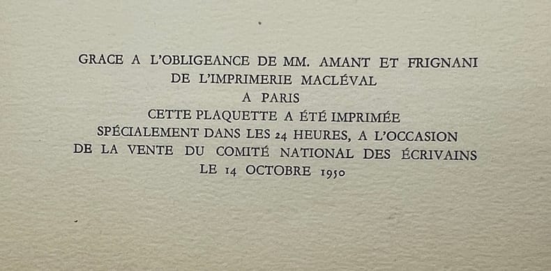 Editions Seghers. " Poésie 50 ". 1950. Plaquette in-8° en feuilles sous couverture imprimée. 11 pages. E.O. tirée à 100 exemplaires numérotés sur pur fil Johannot.