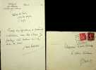 Jean Cassou (1897-1986), poète, écrivain, résistant. L.A.S. + enveloppe, 23 février 1937, 1p in-12. A l'acteur Emile Drain (1890-1966), connu pour ses interprétations de Napoléon. « De tout coeur merci. Jean Cassou ». Cachet de la collection Jean-Louis Debauve. [18]