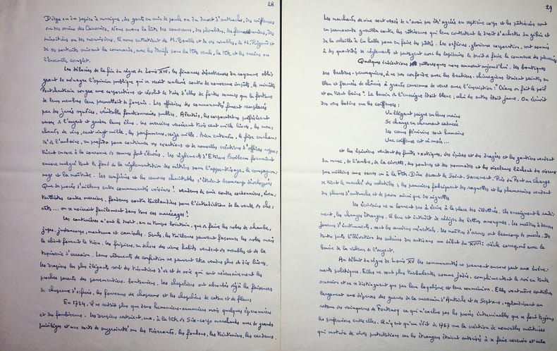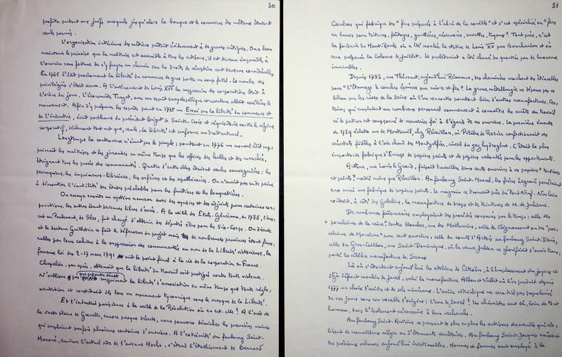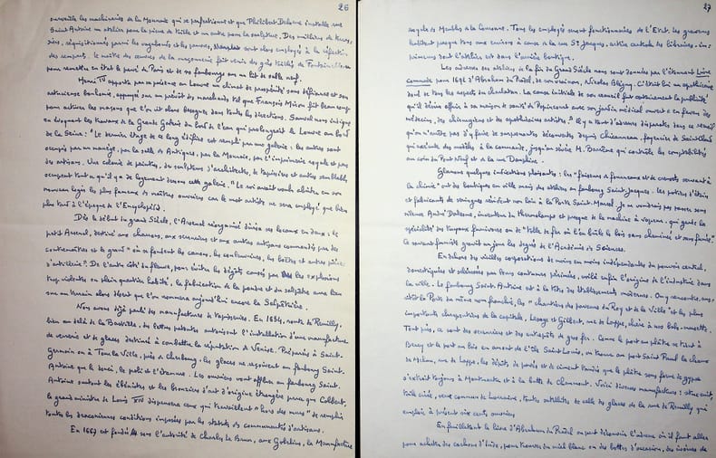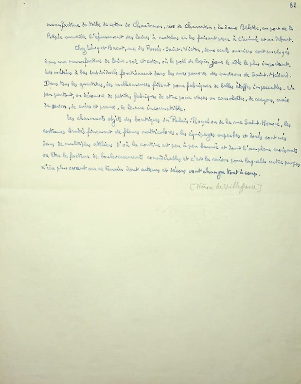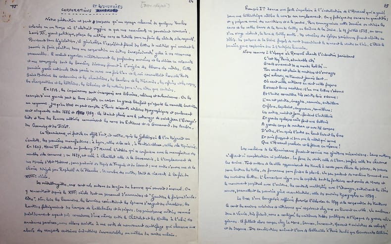 René Héron de Villefosse (1903-1985), historien, notamment de Paris, conservateur de musée. Manuscrit autographe, sd, 9p in-folio. Chapitre d'un ouvrage (?) titré « Corporations et industries », peut-être pour son Histoire de Paris, publiée par Grasset en 1955. Cachet de la collection Jean-Louis Debauve. [20]